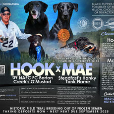 Hook - NAFC-FC Barton Creek's O Mustad needs no introduction. This litter will be grandchildren of 2XNAFC 2xCNAFC FC CFC Ebonstar Lean Mac - Hook’s Sire.